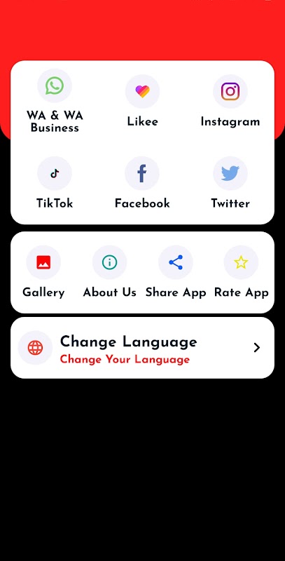 Application to view and download status of whatsapp, instagram, facebook, twitter, Likee.