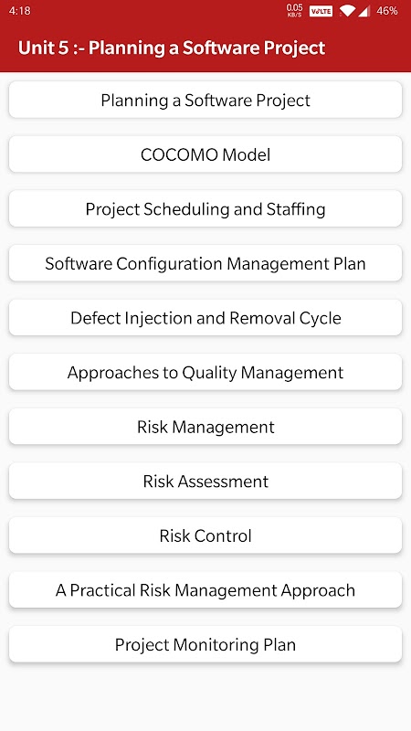 The app is a complete free handbook of Software Engineering which covers important topics, notes, materials on the course.