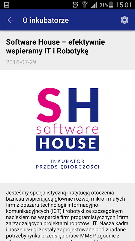 Jesteśmy specjalistyczną instytucją otoczenia biznesu wspierającą głównie rozwój mikro i małych firm z obszaru technologii informacyjno-komunikacyjncych (ICT) i robotyki ze szczególnym naciskiem na wsparcie firm programistycznych i firm zarządzających projektami robotów i IT. Nasza kadra i nasze usługi zostały zaprojektowane pod zbadane potrzeby rynku przedsiębiorstw MMSP zgodnie z silnie rozwijającym się popytem na aplikacje mobilne, tworzenie gier komputerowych, robotyki, systemach dla seniorów i niepełnosprawnych (Ambient Assisted Living), e-usług, oprogramowania w modelu SaaS, innowacyjne metody interakcji człowiek – technologia np. robot. Warunki stworzone w naszym inkubatorze do rozwoju firm oparte są na kilkunastu obszarach wsparcia merytorycznego. Prowadzimy usługi księgowe, prawne, patentowe i doradcze, wynajmujemy biura, sale szkoleniowe, sale do telekonferencji, laboratorium RoboLab, sala strefy kreatywnej, serwerownię, wspólne „office center” dla mikrofirm. Inkubator organizuje szkolenia branżowe niezbędne w rozwoju biznesu w technologiach programowania i metodyk zarządzania projektami IT.