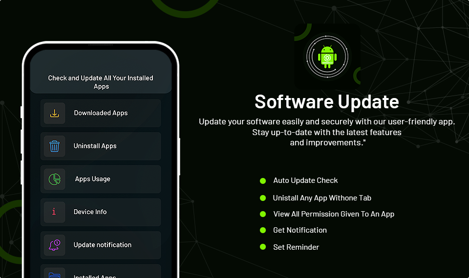Software Update is Check & Update all your Installed Apps with 1 Click.