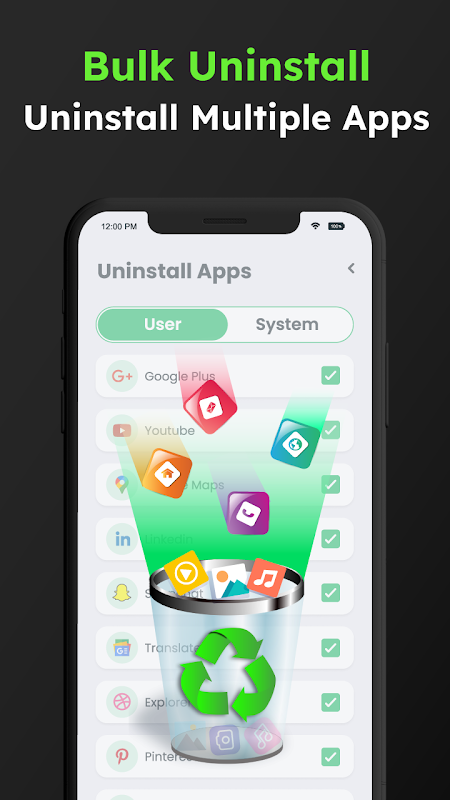 Use App Uninstaller feature to clean up your device and update apps simultaneously. Remove unwanted apps safely and stay updated with the ones you use.
