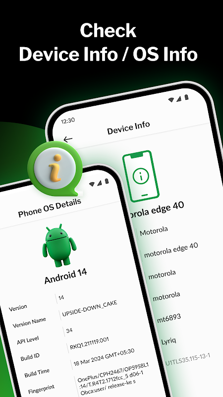 Detailed App Info: View the current and new version, size, and permissions of each app. Check when an Android update, app update, or software update is available at a glance.