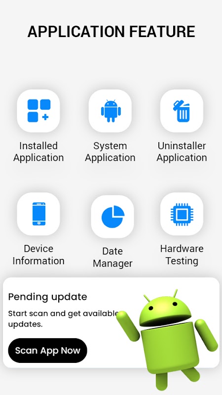 Software update helps you to check pending updates with its Scan Now button and update all apps. Software update app works for both app updates and Android system updates. You can easily update your Android Operating system with its System update feature. The interface of Software update - phone update app is very simple and easy to use.