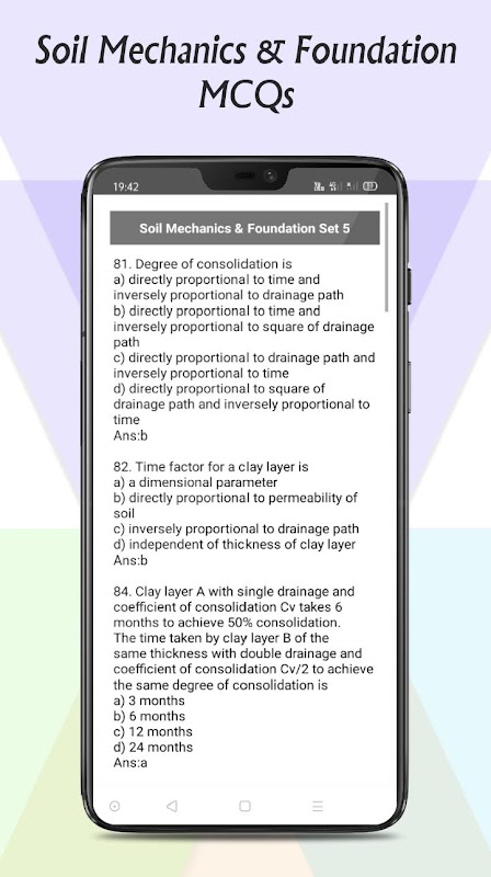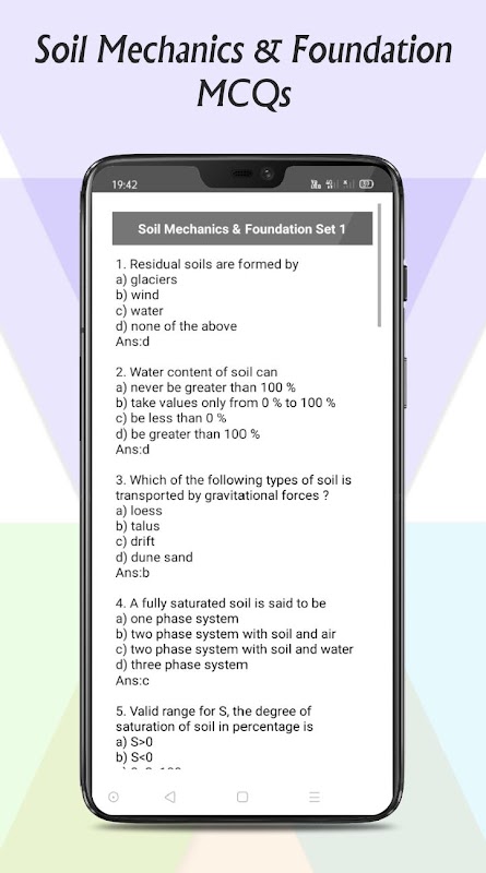 This application contains multiple choice questions of all important topics of Soil mechanics and Foundation in 13 sets with answer. This is helpful for preparation of competition exam and College study.