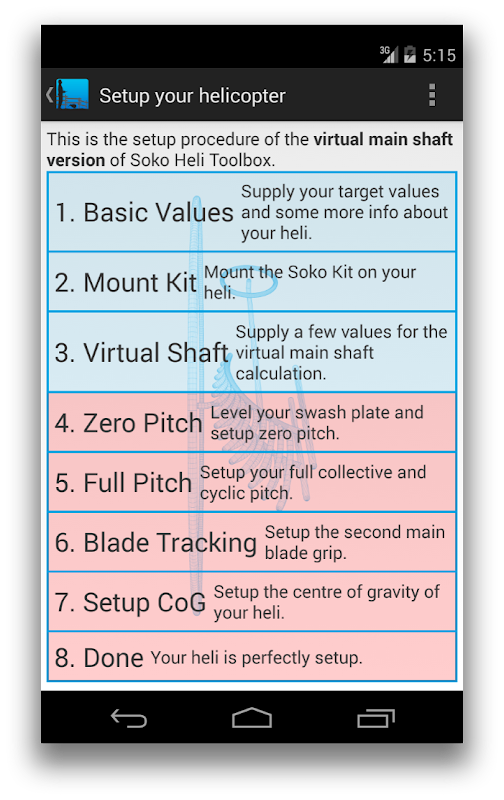 It doesn't matter if you are a rookie and build your very first flybarless RC helicopter or you a pro and you do it every week. With the instructions in the Soko Heli Toolbox app you will get a perfect setup each time.