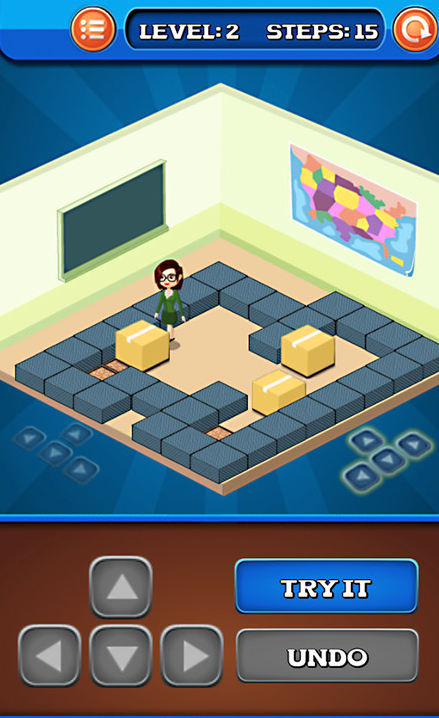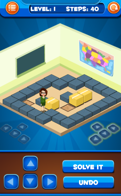 Move the boxes to the storage location, solve the puzzle. Brain traning puzzle.