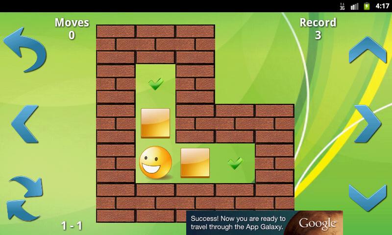Sokoban is a type of transport puzzle, in which the player pushes boxes around in a warehouse, trying to get them to storage locations. Only one box can be pushed at a time. A box cannot be pulled. The puzzle is solved when all boxes are located at storage locations.