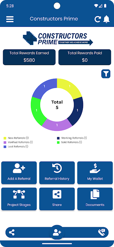 Constructors Prime is a free app available for anyone to download and is used for those that want to earn rewards by sending referrals to Constructors Prime. It is as simple as downloading the App, selecting the sales rep and registering. Once registered, you can begin sending referrals right away. It is the one app that will allow the user to easily submit referrals to Constructors Prime and track the progress of your referral and rewards right on your mobile device. Referring has never been so easy.