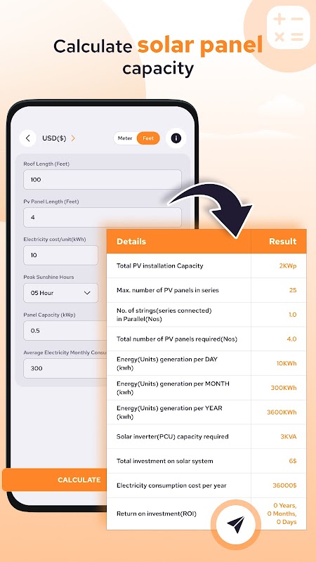 •This Feature helps you calculate how much energy your solar panels can produce daily, how much electricity you might still need from the grid, and how much money you can save or earn. It's a quick and easy way to understand the real value of your solar setup.