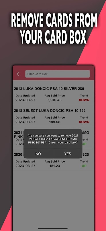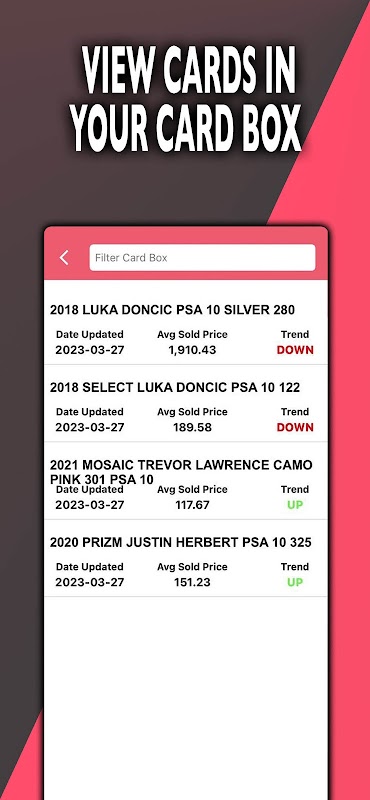 * Auto Complete Search: At the home screen or within the analytic tool, you will be able to quickly search for previously searched cards. This gets updated each time you open the application.
