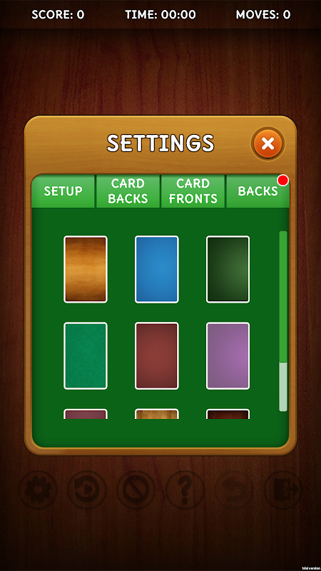 This is Klondike Solitaire. One of the most popular variant of the solitaire game. Includes 21 great solitaire card backs, 4 solitaire card fronts and 9 beautiful backgrounds.