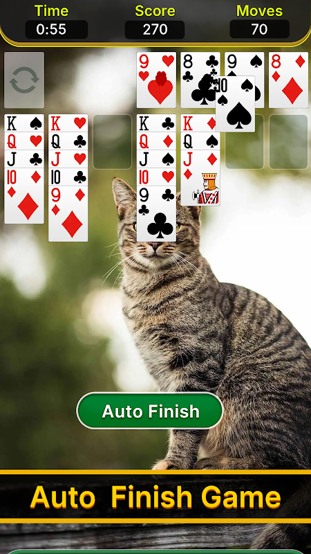 Choose different card themes (both card face and card back) and background on your favorite solitaire no ads free offline game.