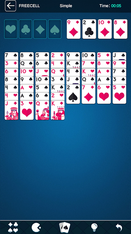 The FreeCell Solitaire only uses a deck of cards, a total of 52 cards, with the cards facing up and arranged in eight columns. Create four stacks by moving cards from these eight columns: