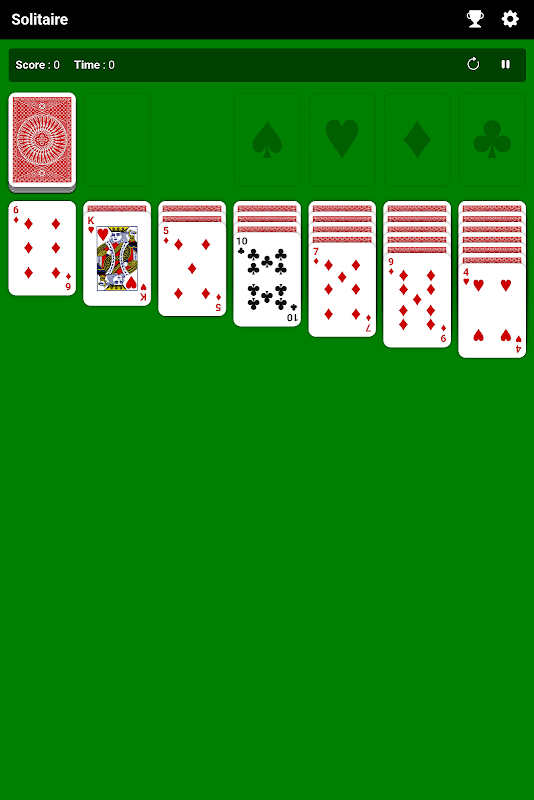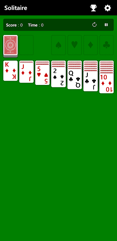 Solitaire is a simple game of card games, also known as Klondike, where the goal is to get cards from a deck of 52 cards, excluding the Joker, and move all the cards from the deck to the foundation deck space above. Enjoy this simple and addictive game anywhere like you enjoyed on Windows.