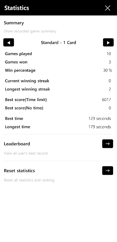 - You can view your statistics and best records for each game rules.