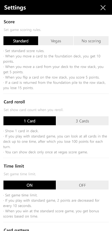 - If time limit on, when you play with standard game, 2 points are decreased for every 10 seconds.