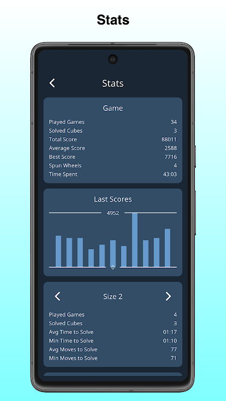 The game lets you play with cubes of various sizes. The goal is simply to solve the cube and earn a score as high as possible.