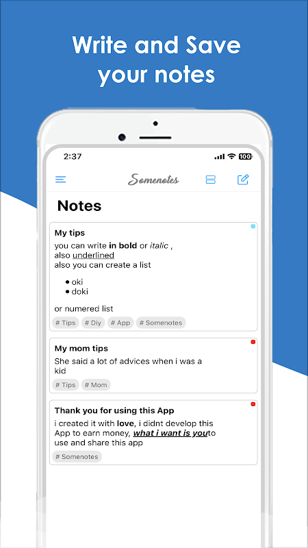 Web app to write, save all your notes in the cloud, based on somenotes website