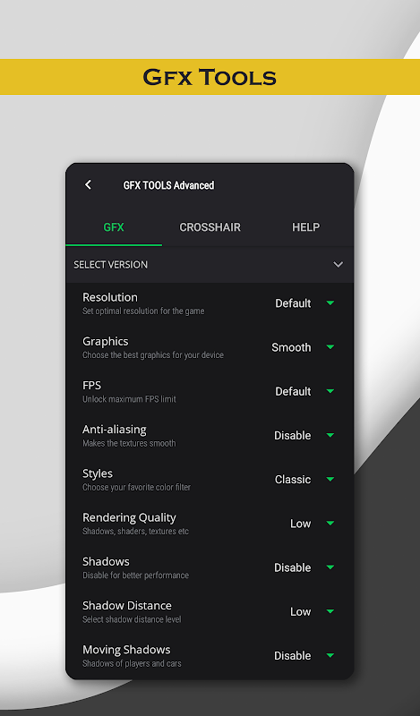 Customize game resolutions, fps and change graphics style setting with GFX Tools