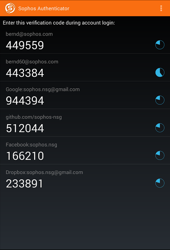 Once configured, 2-step authentication protects your account by requiring both your password and an additional code, thus adding an extra layer of security. The app will generate these codes for you in a convenient way, directly on your smartphone or tablet, without the need for Internet connection. Sophos Authenticator does not only operate with a Sophos account, but also with accounts from Google, Dropbox, Facebook, Github and all the other providers who implement authentication in this standardized way.