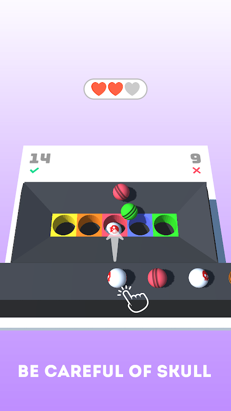 Throw color ball into similar color hole.
