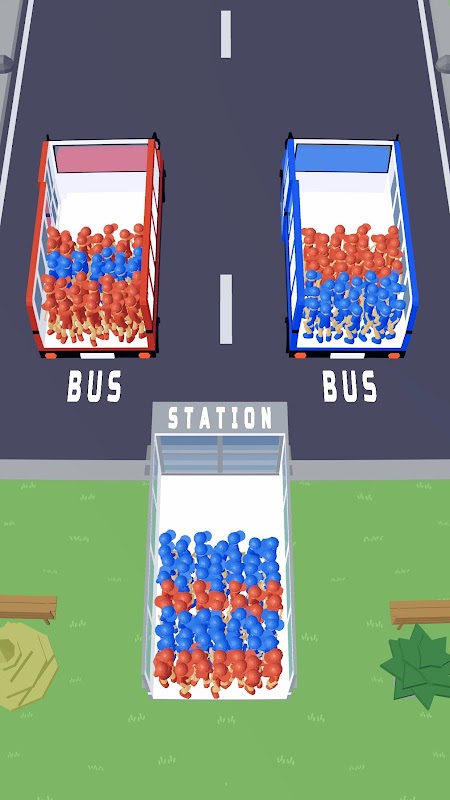 Move the commuters to their respective bus colors by following a certain order to complete the level.