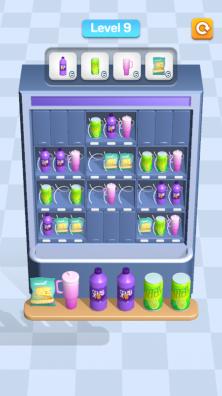 •Drag items from below onto the shelves, triggering automatic sorting if identical items exist in neighboring shelves.