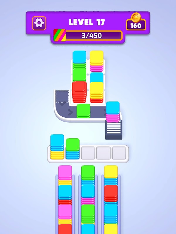 Get ready for a colorful challenge in Sorting Cards! Send vibrant card piles onto a moving conveyor belt, and watch as matching colors jump to stack and merge. Your goal is to match and merge the card piles to meet the level’s objective. Ready to sort your way to victory? Download Sorting Cards now and start stacking!