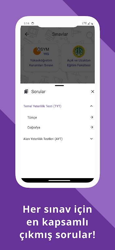 "Preparation for the YKS exam is now much easier with the Sorubaz - YKS Questions application! We bring the questions of previous years with their solutions to your pocket. Thanks to Sorubaz, you can have the real exam experience, test yourself and see your shortcomings.