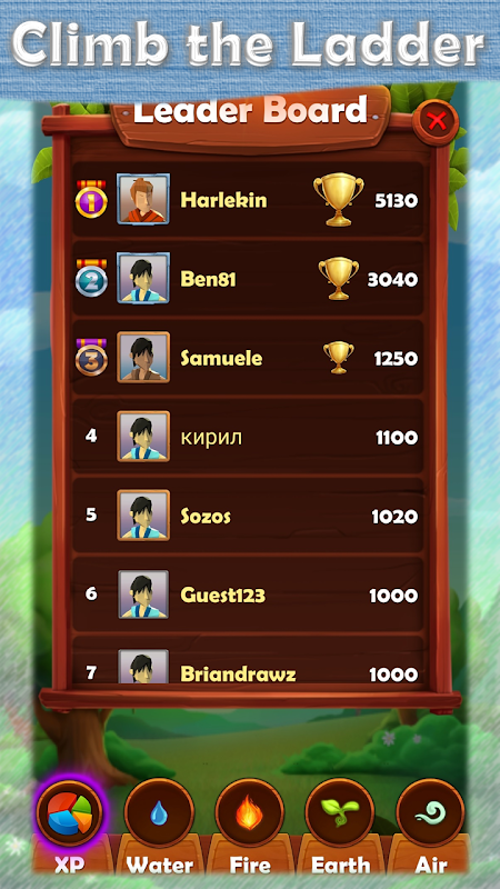 Individualize your game experience by adding advanced characters, sceneries or victory dances. Or enjoy the game in its base version without any disadvantage in your duels and make your way up to the Templar, Master, Legend or Semi-God for one of the four elements.