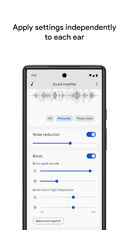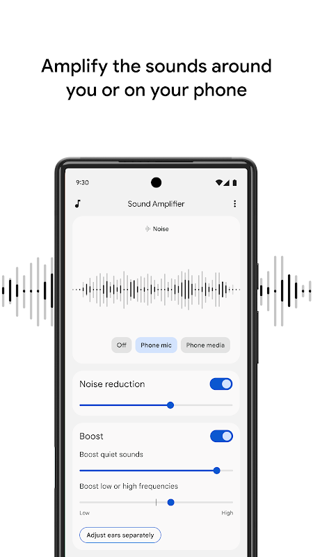 Sound Amplifier makes everyday conversations and surrounding sounds more accessible among people who are hard of hearing, using just your Android phone and a pair of headphones. Use Sound Amplifier to filter, augment, and amplify sounds around you and on your device.