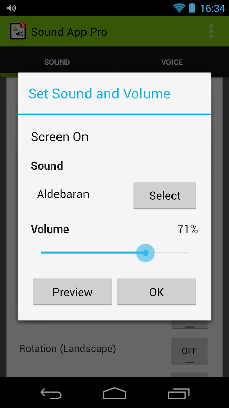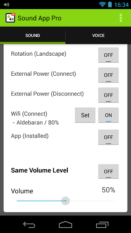 You can set the notification sound for screen on, screen off, system startup, power off, external power connected, external power disconnected, headphone plugged in / out, WiFi connected, or installation of app completed.