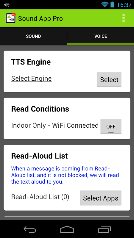According to a study, an average user checks their device over a 100 times per day. Sound app can also read selected notifications message aloud (Text-to-speech / TTS), so that you do not need to unlock your phone and check messages frequently.