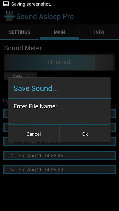 Listens while you sleep for loud noises such as snoring, sleep talking, dogs barking, doors closing, windows breaking, etc. Starts recording after the loud noise for a set time. # of events to record is adjustable. In the morning playback the sounds and find out what happened last night. Each event has its time logged down.