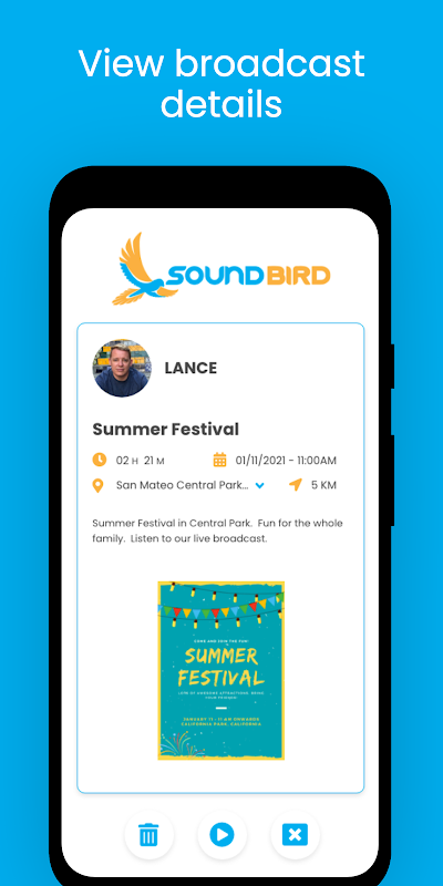 Use the SoundBird app at in-person and virtual events. Popular uses include outdoor sports, tours, speeches, classes, or any situation where there is an audience with phones. SoundBird replaces a traditional microphone in many situations.