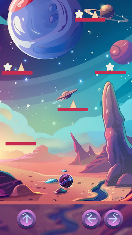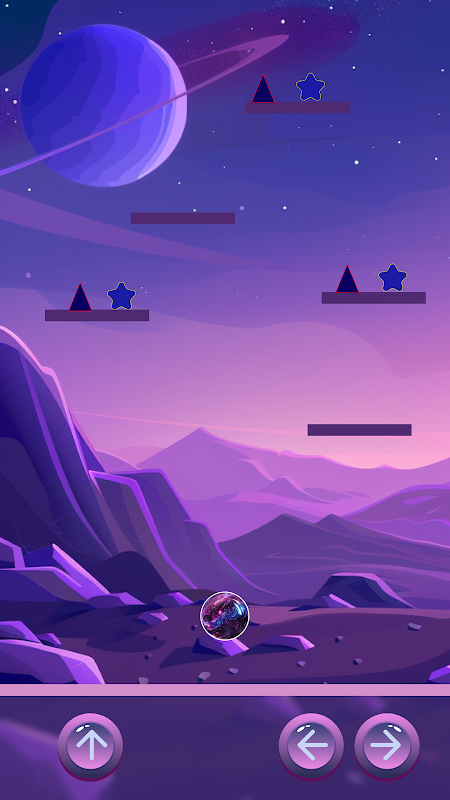 Space Ball is an exciting and beautiful game, the essence of which is to control the ball in space, the main goal is to collect the stars that are on the platforms, but it is not an easy task as they are guarded by evil triangles that can hurt the ball and the game will start again, and the control of the jump is not the same simply because this is space, there is no gravity, so the ball can perform a jump many times, which allows you to climb to the highest platform and possibly get the last star, beautiful music and sounds, supplemented with vibrations that will help you immerse yourself in the cosmic universe of Space Ball.