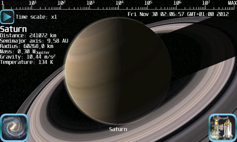 Realistic 3D space travel simulator and planetarium.