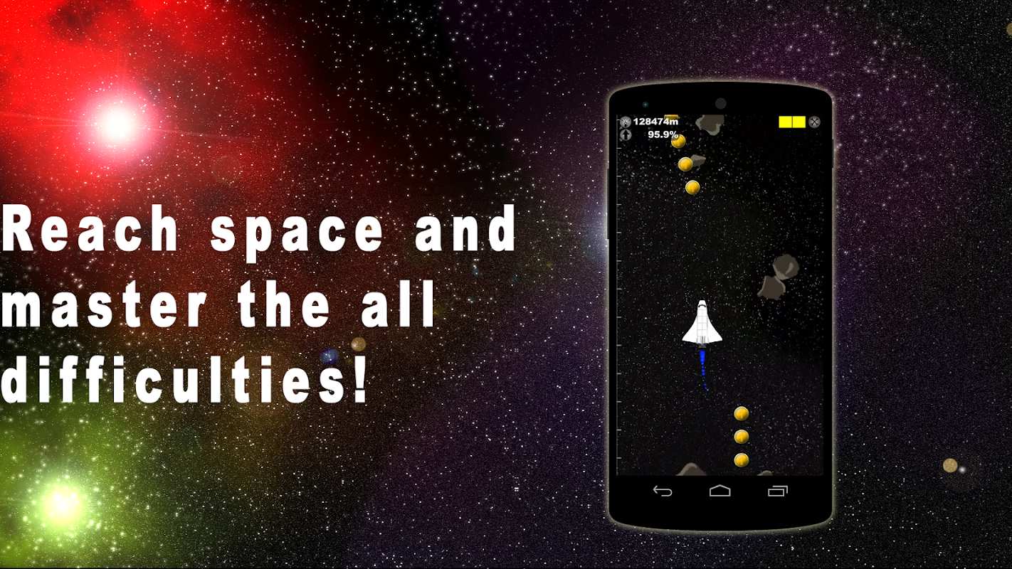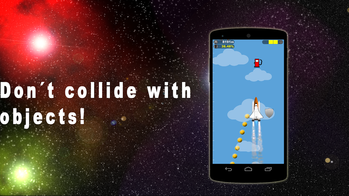 Not only planes or hot-air ballons will cross your way, but also satellites, astroids and more. If you dont hit them, you need to care about your fuel! If your fuel runs out, you will fall down the long way down to the earth again.