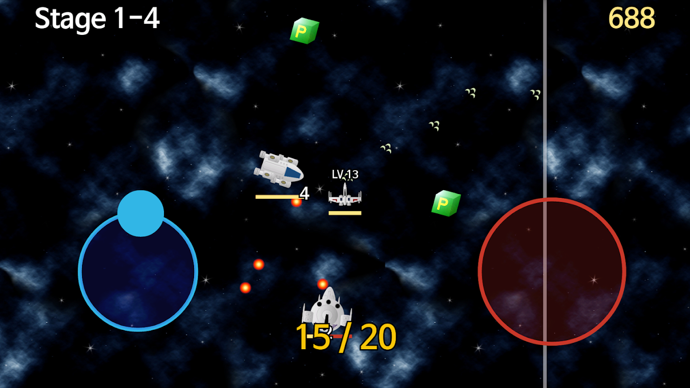 The weapons fired from the fighter plane is various, and the more beads you eat, the greater your damage. The enemy's space battleships and planes have a wide range of stamina, and the larger the size, the more stamina so it is hard to destroy them. However, the more weapon upgrades, the higher the attack power and the faster you can destroy enemy's space battleships and airplanes.