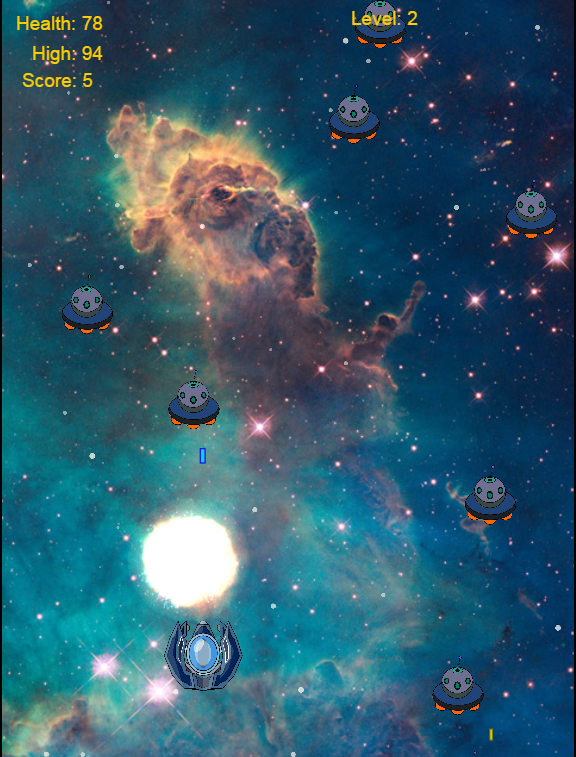 - shoot and destroy alien space craft