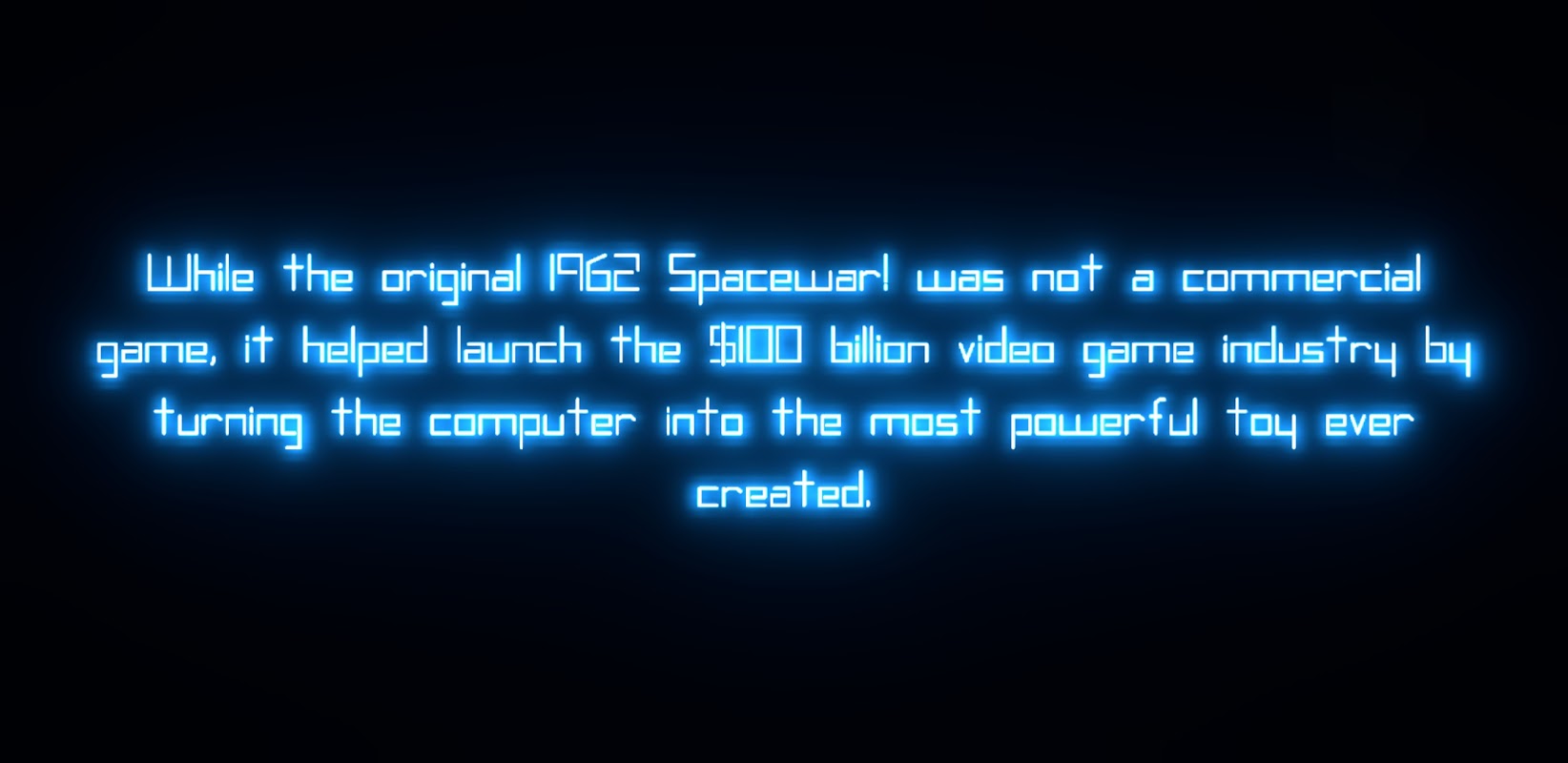 While the original 1962 Spacewar! was not a commercial game, it helped launch the $100 billion video game industry by turning the computer into the most powerful toy ever created.