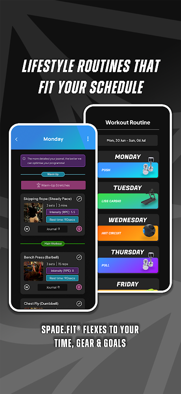Spade.Fit delivers intelligently personalised workouts powered by our Triple Adaptive Intelligence. Each training session instantly adapts to your performance feedback, lifestyle schedule, and available equipment, ensuring your programme always feels just right: challenging but manageable, precise but flexible.