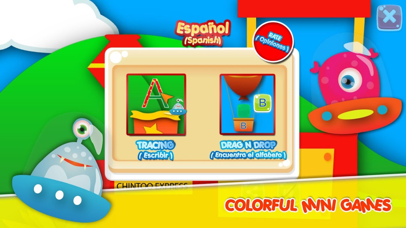 A fun app to learn Spanish, Tracing alphabets and fun matching mini-game