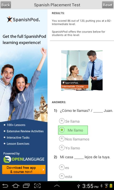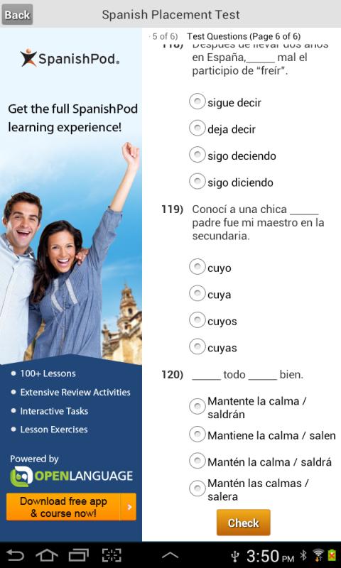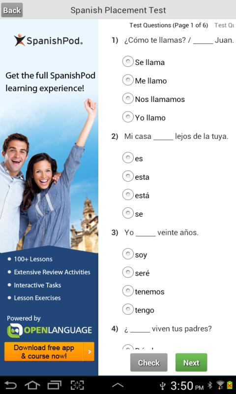 This test is only designed to help students determine which level of courses they should study. It should not be used as an absolute measure of proficiency. Brought to you for free by OpenLanguage Spanish.