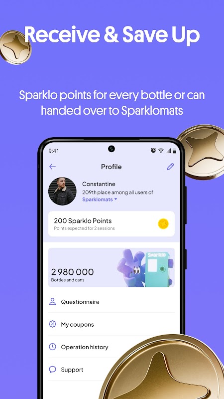 Mobile application of the Sparklo reverse vending machines (RVMs) network rewards program.