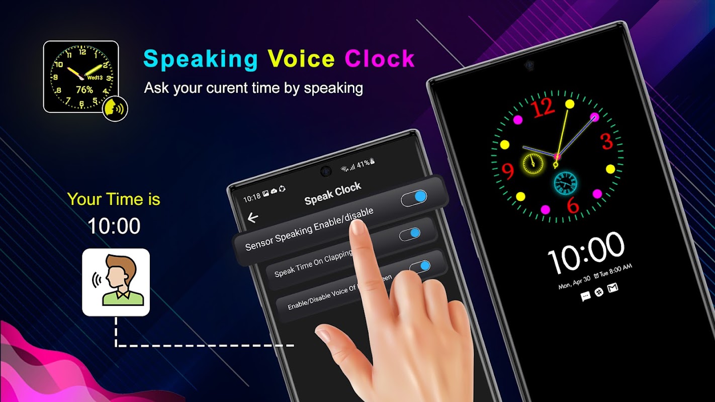 The talking clock can also start up when you clap your hands! Enable the speak time option in the voice clock app, and impress your friends with just a few claps!