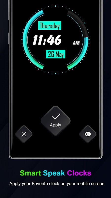 Choose one of many different digital clock looks with this fantastic time app. With not just incredible styles, the speaking watch app also has a talking clock function that can speak time!
