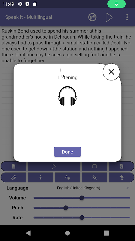 Helps you hear the correct pronunciation of sentences and words in multiple languages and the ability to control the tone of voice, speed, volume, and the ability to save and retrieve sentences