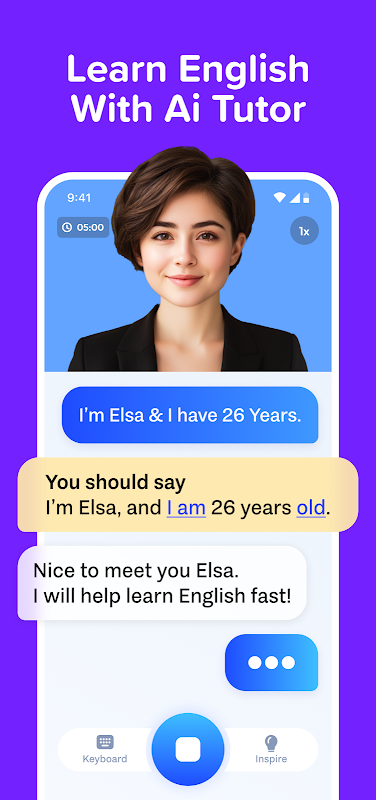 Meet your Fluently AI English tutor! Experience dynamic, real-time conversations with an advanced AI that listens and responds. Our AI tutor provides a judgment-free zone for daily practice, making it the perfect way to speak and learn English. This is the future of language learning and personal education. Your AI tutor is always available for a new English conversation within Speak & Learn English: Learn AI.