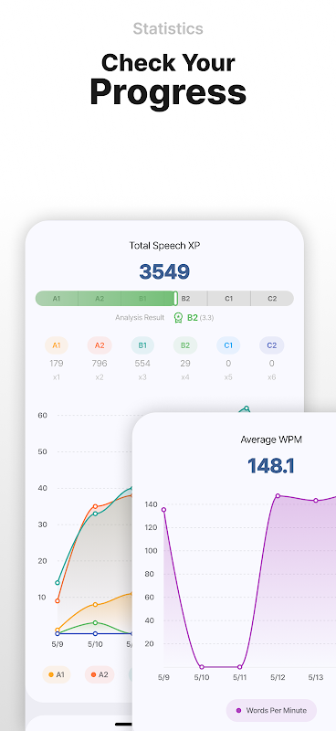 Challenge yourself by competing with other users! Access daily, weekly, and monthly rankings to see who excels. SpeakEasy offers various statistics to track your progress and compare achievements with others.